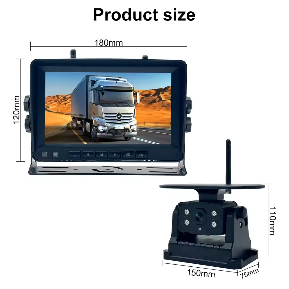 Il...Sistema di telecamera retrovisoria con display wirelessè specificamente progettato perautoveicoli- eveicoli di grandi dimensioni, che fornisce un monitoraggio video in tempo reale dell'ambiente circostante il veicolo per garantire la sicurezza durante la marcia indietro o il parcheggio.connettività wireless, il sistema elimina il cablaggio complesso, rendendo l'installazione rapida e semplice.Monitor ad alta definizione da 7 pollicifornisce un video chiaro e nitido, mentre la telecamera wireless fornisce riprese retrovisorie di alta qualità anche in condizioni difficili.